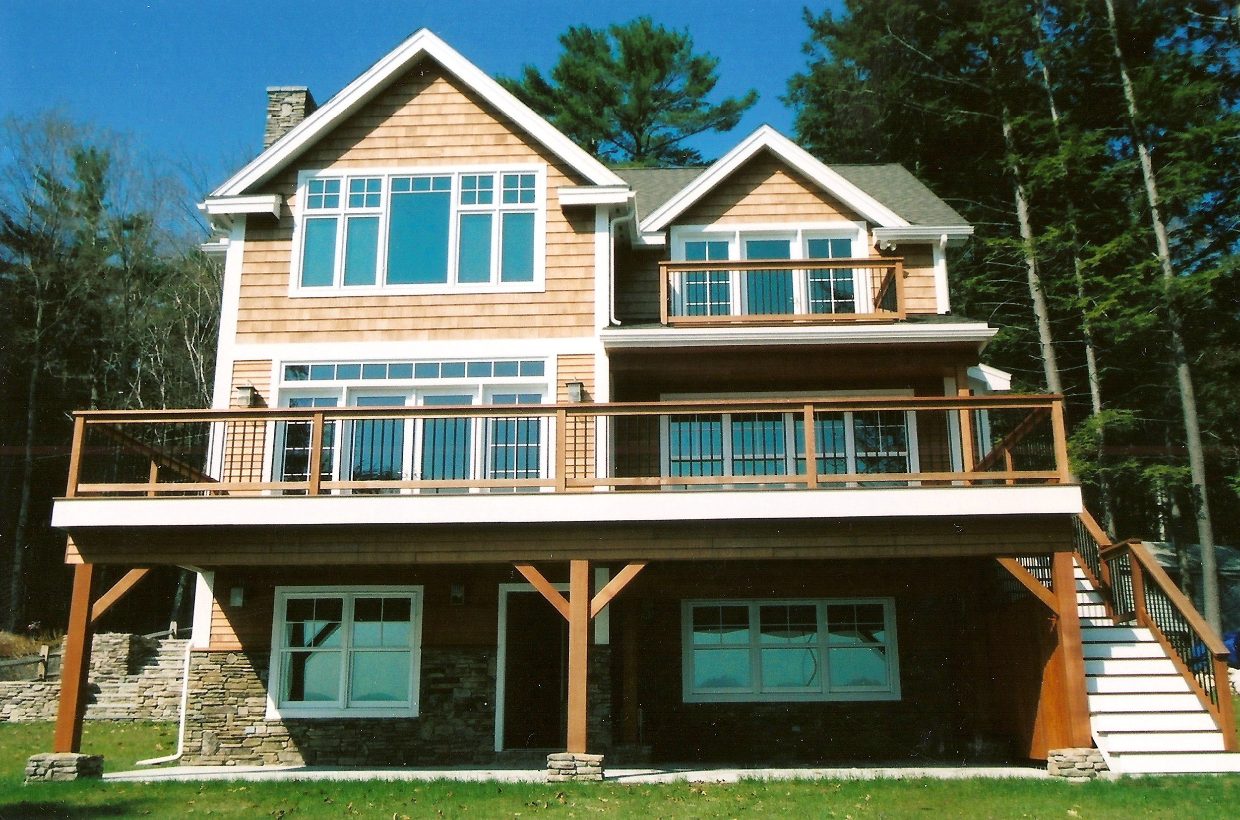 Stunning 3 story new construction featuring cedar siding, radiant heat, custom stonework, and incredible lake views from the huge cedar deck.